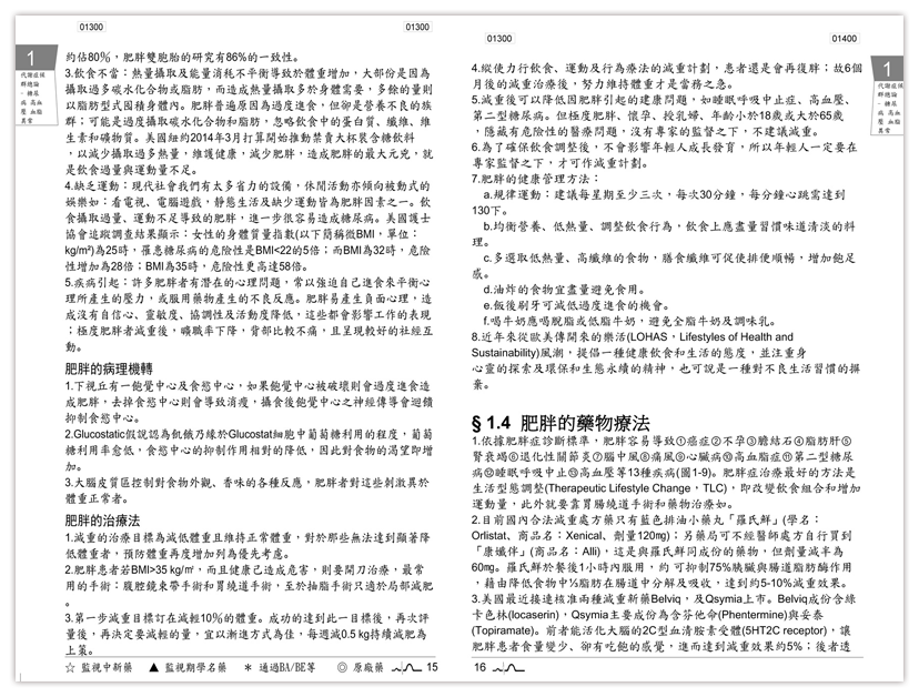 •第一篇為代謝症候群總論,介紹糖尿病、高血壓、高血脂以及糖尿病的診斷與治療。